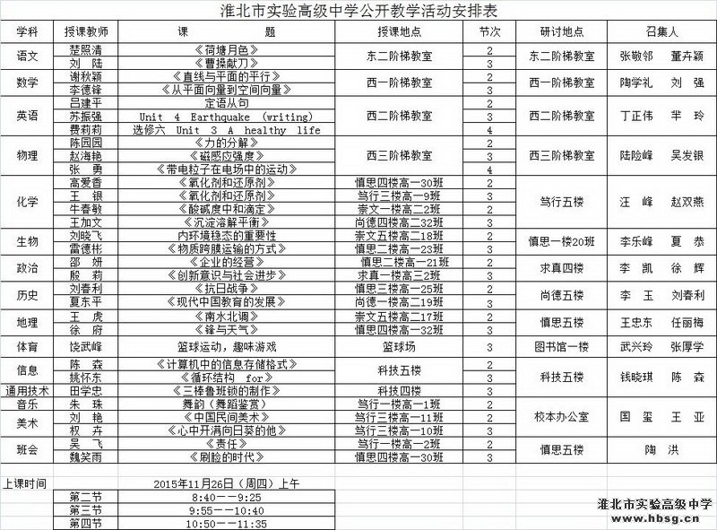公开课安排