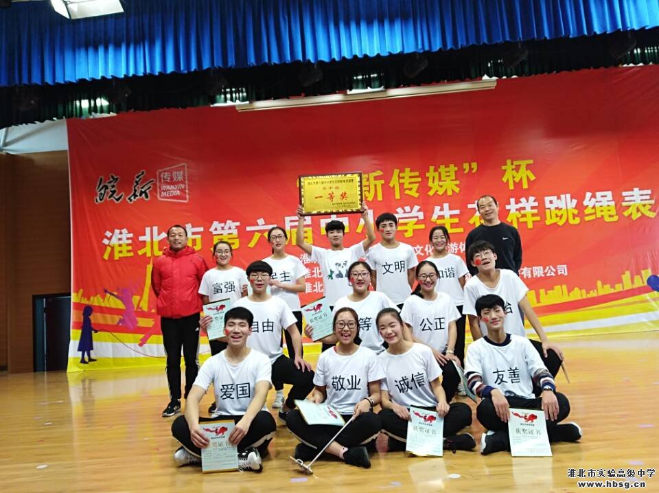 在刚刚结束的“皖新传媒”杯淮北市第六届中小学生花样跳绳比赛中,我校代表队表现优异,以