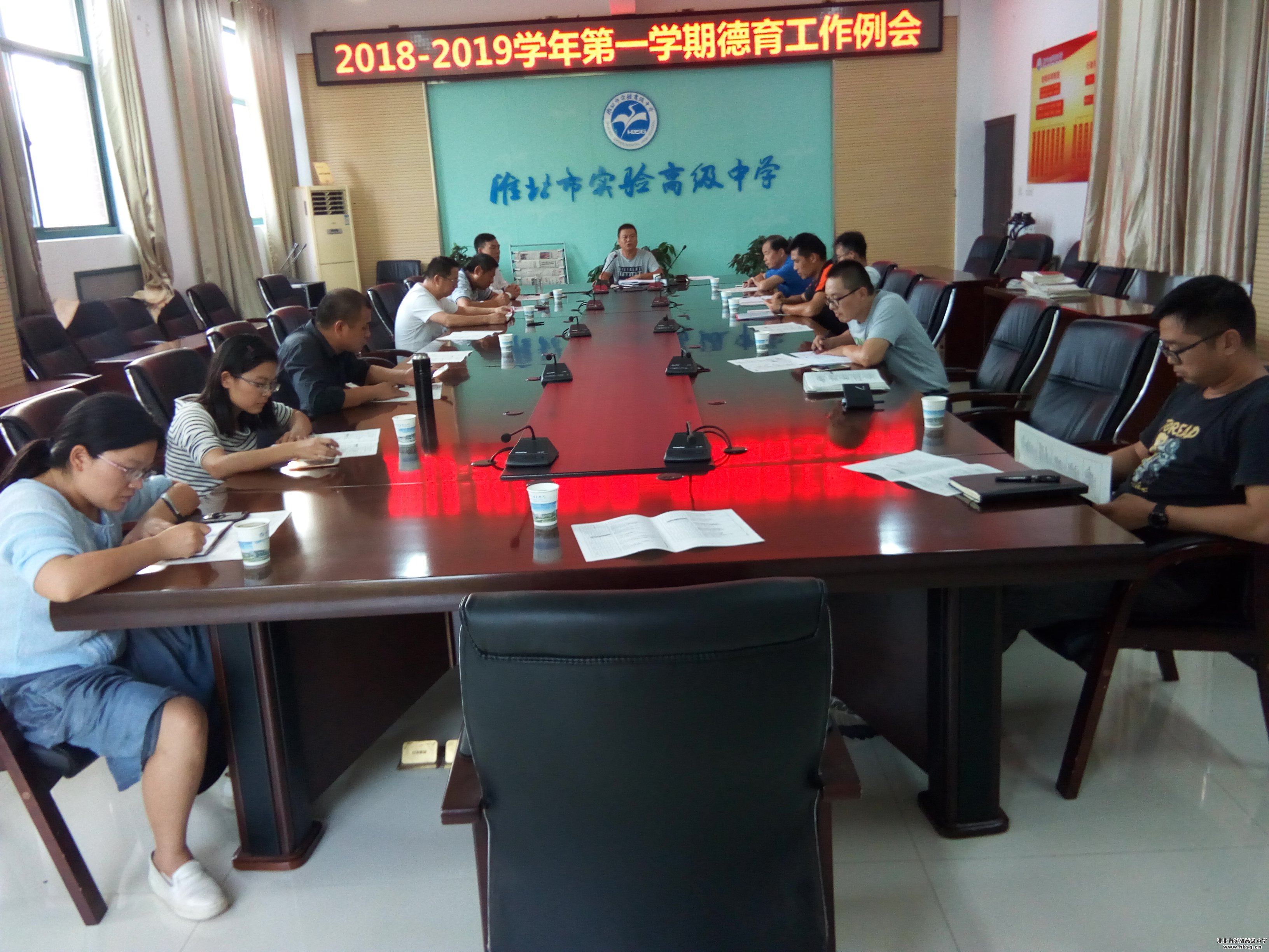 为提高学校德育工作和班级管理水平,增强班主任的工作能力,提高班主任整体素质,进一步增强班级管理工作的针对性与实效性,学校政教处于9月21日在行政楼四楼会议室召开了2018——2019年度第一学期德育工作例会。本次例会由政教处马辉主任主持,参加会议的有校长池永平、德育校长张成荣、综治处主任徐敬争、政教处班主任发展中心主任陶洪、资助中心主任高明、各级部德育主任、体育组及心理咨询室等相关负责老师。