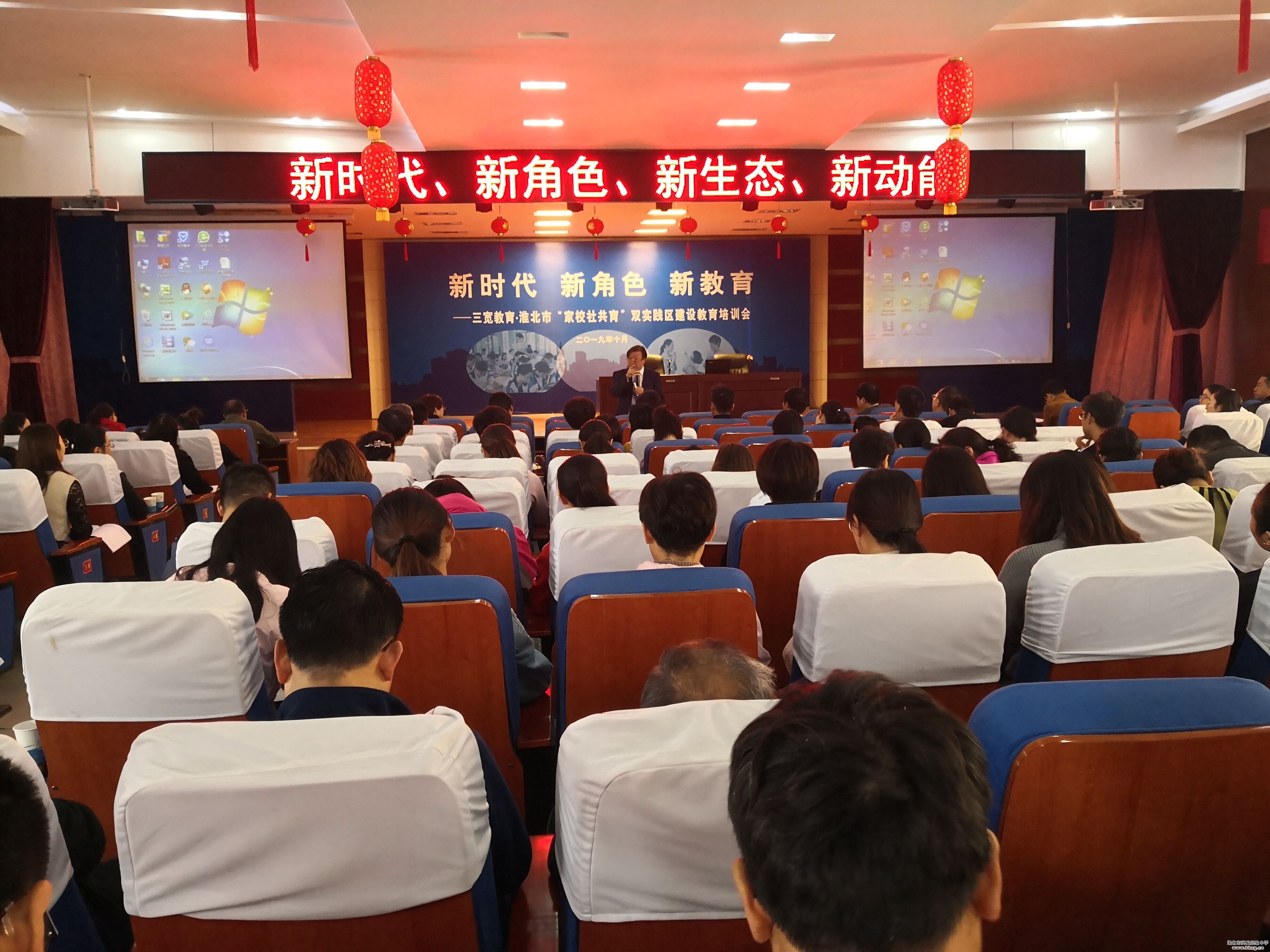 10月19日上午,我校政教处选派二十五名教师参加了在三实小礼堂举办的三宽教育专家讲座。讲座共两场,第一场是由三宽家长教育科学研究院院长、著名家长教育专家、公民教育模式创始人萧斌臣主讲的《新时代、新角色、新生态、新动能——重新认识家长教育与家校社共育的时代价值》;第二场是由三宽教育科研主管院长李虹主讲的《“家校社共育”的再认识与现代家庭教育观》。两位专家的演讲精彩,与会教师、家长听课认真。会后,与会的教师、家长纷纷表示要加强家校合作,科学监管,助推学生成材。