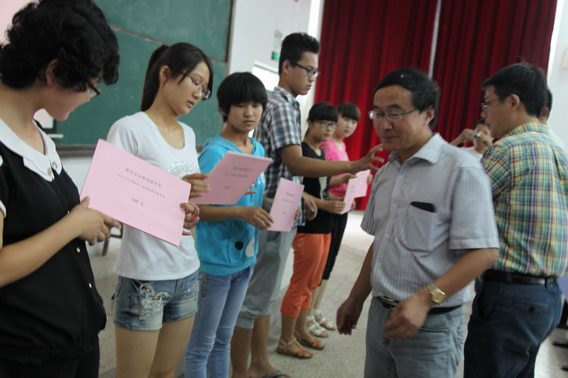 政教处张主任在发放仪式上做了简短而热情的讲话,他勉励受助学生在大学努力学习,为母校争光。