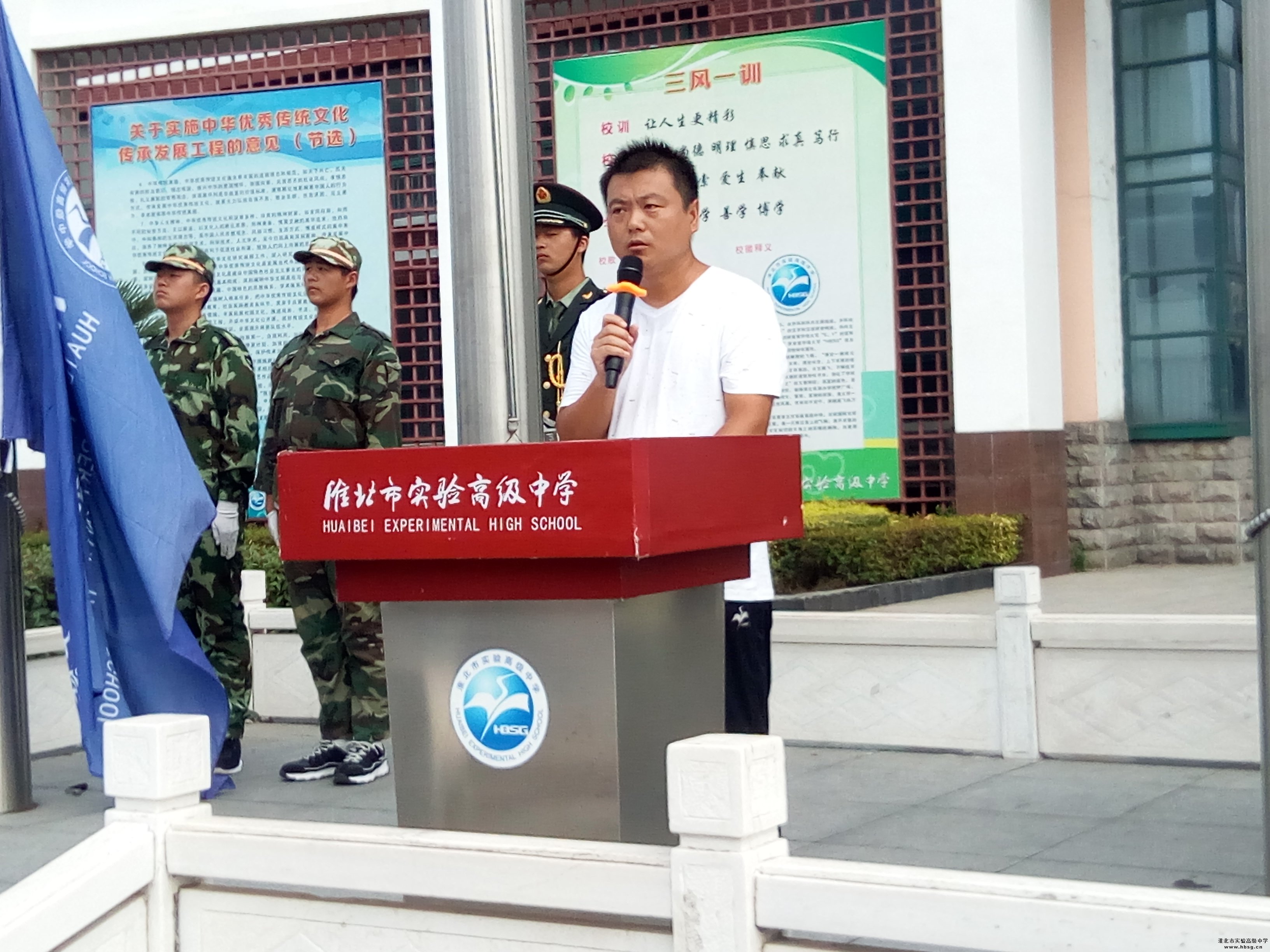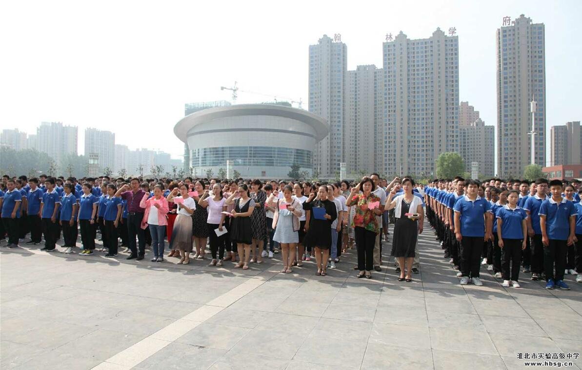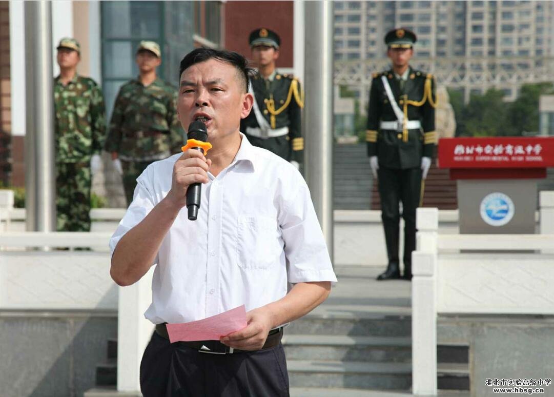 9月3日,我校在中心广场隆重举行了新学期升旗仪式暨开学典礼。开学典礼由政教处主任马辉主持,5000余名师生参加了活动。伴随着嘹亮的国歌,五星红旗冉冉升起,全体师生列队行注目礼。整个仪式简单朴素、严肃庄重。升旗仪式结束后,学校党委副书记、校长池永平发表了热情洋溢的致辞。池校长回顾了上年度学校在教育教学、校园建设、团队活动等方面取得的优异成绩,并向全体师生提出了新学期的希望和要求。他希望每位师生要从学校发展角度对自己高标准、严要求,努力为学校增光添彩,希望淮北实验高级中学蒸蒸日上、明天更美好。然后,德育校长张成荣带领全体教职工宣誓做一名“四有”好老师。最后,高二(30)班的陶鑫鑫同学带领全体同学宣誓做一名优秀的实高学子,开学典礼圆满结束。