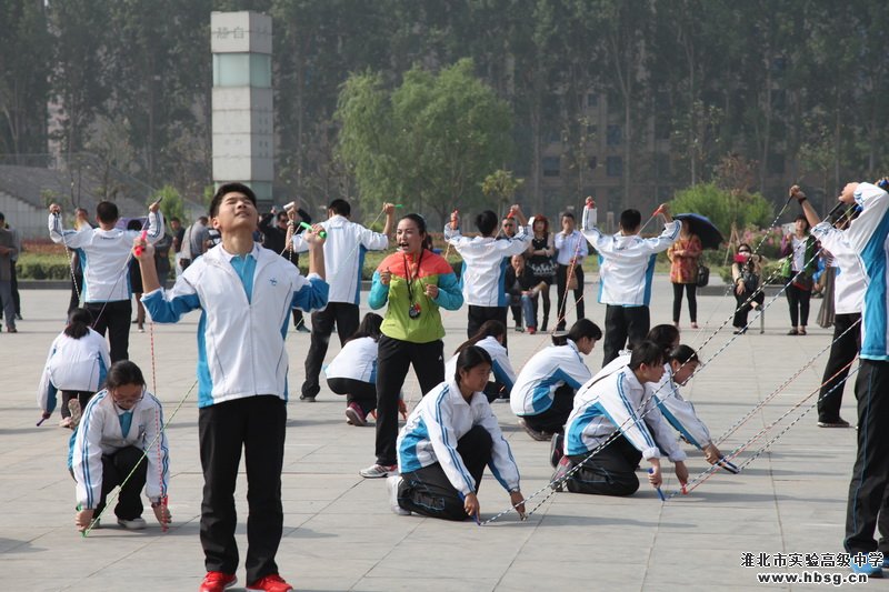 第一阶段,淮北市实验高级中学杨福艳老师的花样跳绳车轮跳展示课,授课地点在实验高中北广场进行。