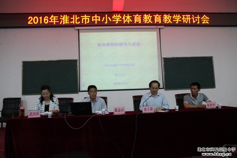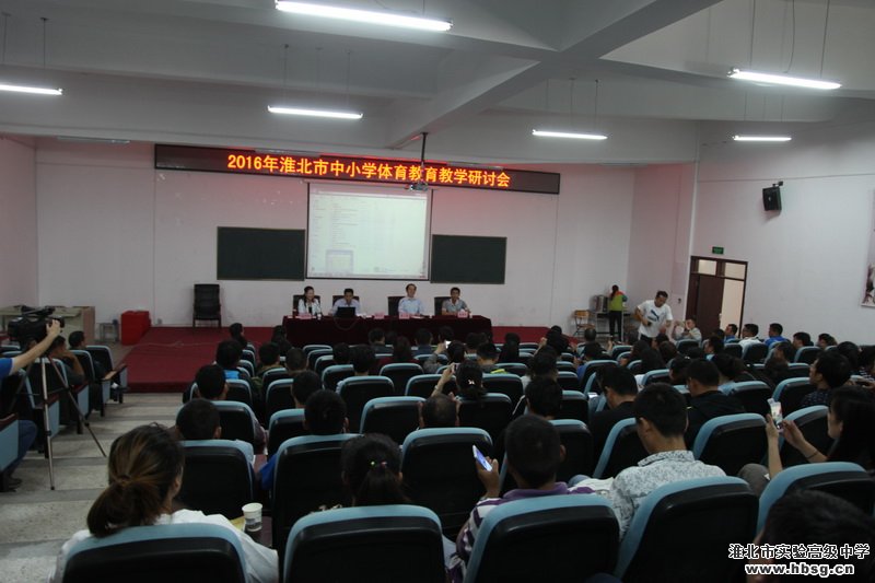 由淮北市教育局教研室、淮北市中学体育名师工作室联合举办的“2016年淮北市中小学体育教师教育教学研讨会”于5月11日在我校隆重召开。参会代表为三区一县的教研员、一线体育教师及中学体育名师工作室成员。