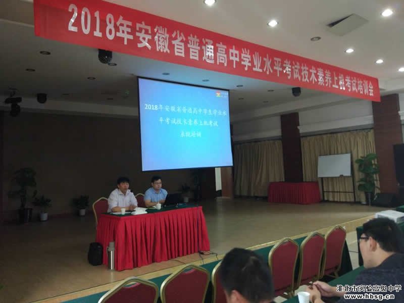 为确保2018年普通高中学生学业水平考试技术素养上机考试顺利进行,淮北实验高中的姚怀东、田学忠老师参加了培训。