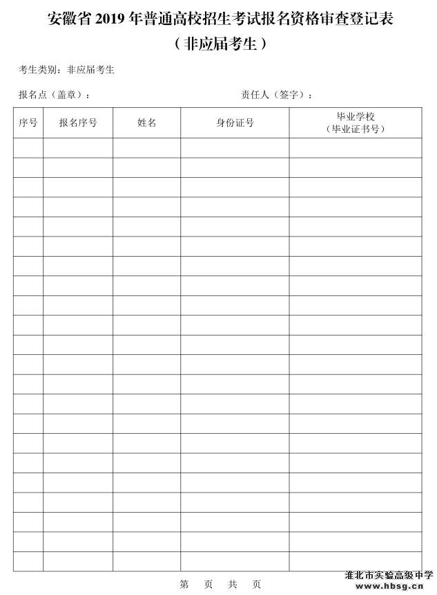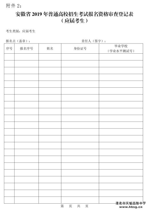 2.安徽省2019年普通高校招生考试报名资格审查登记表