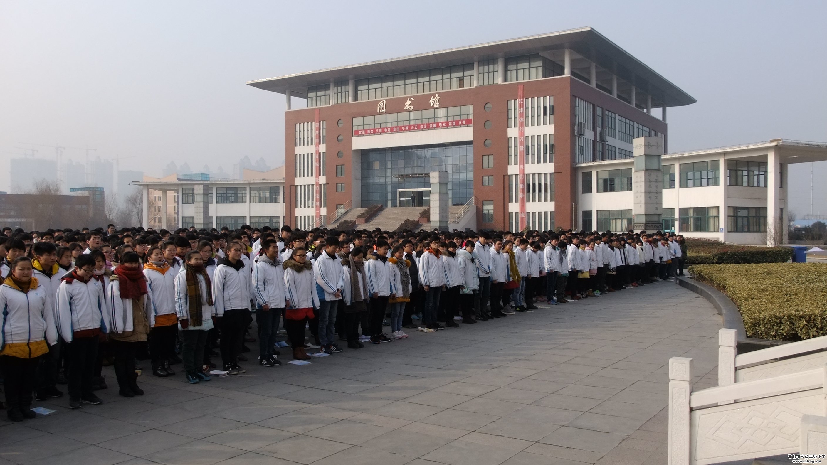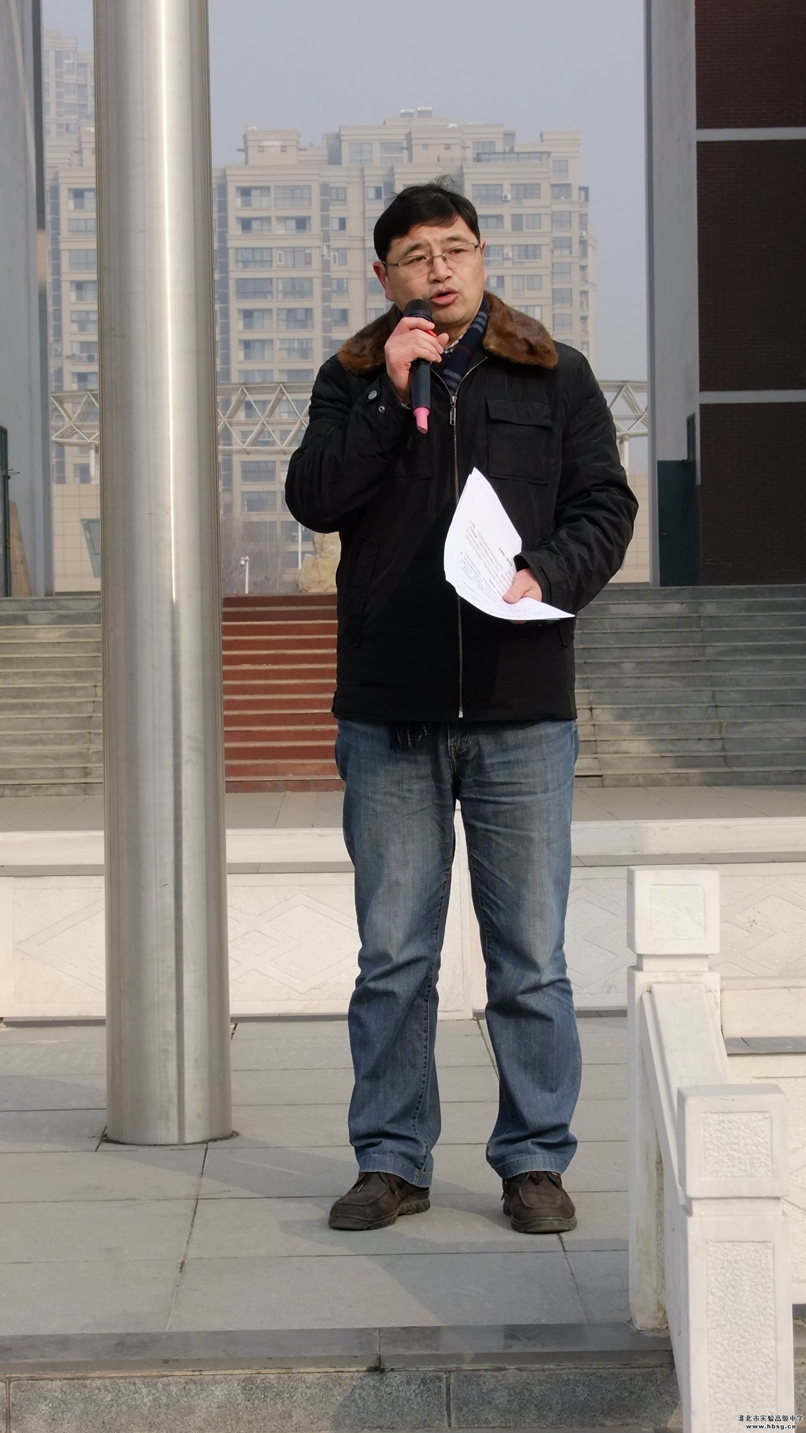 2016年1月18日星期一上午升旗仪式结束后,高二年级全体学生在校中心广场召开考前动员大会。大会由二部主任宛新泰老师主持,年级级部主任和所有班主任参会。学校分管领导方明洋主任就“牢记级训、加强纪律性”和“期末考试动员”两大主题在寒风中发表了历时1小时的重要讲话。