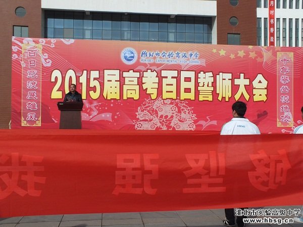 今天上午,我校2015届高三年级进行了百日誓师活动,高三年级全体学生、老师、家长参加了此次活动。在一阵隆隆的鞭炮声后,百日誓师大会正式开始。