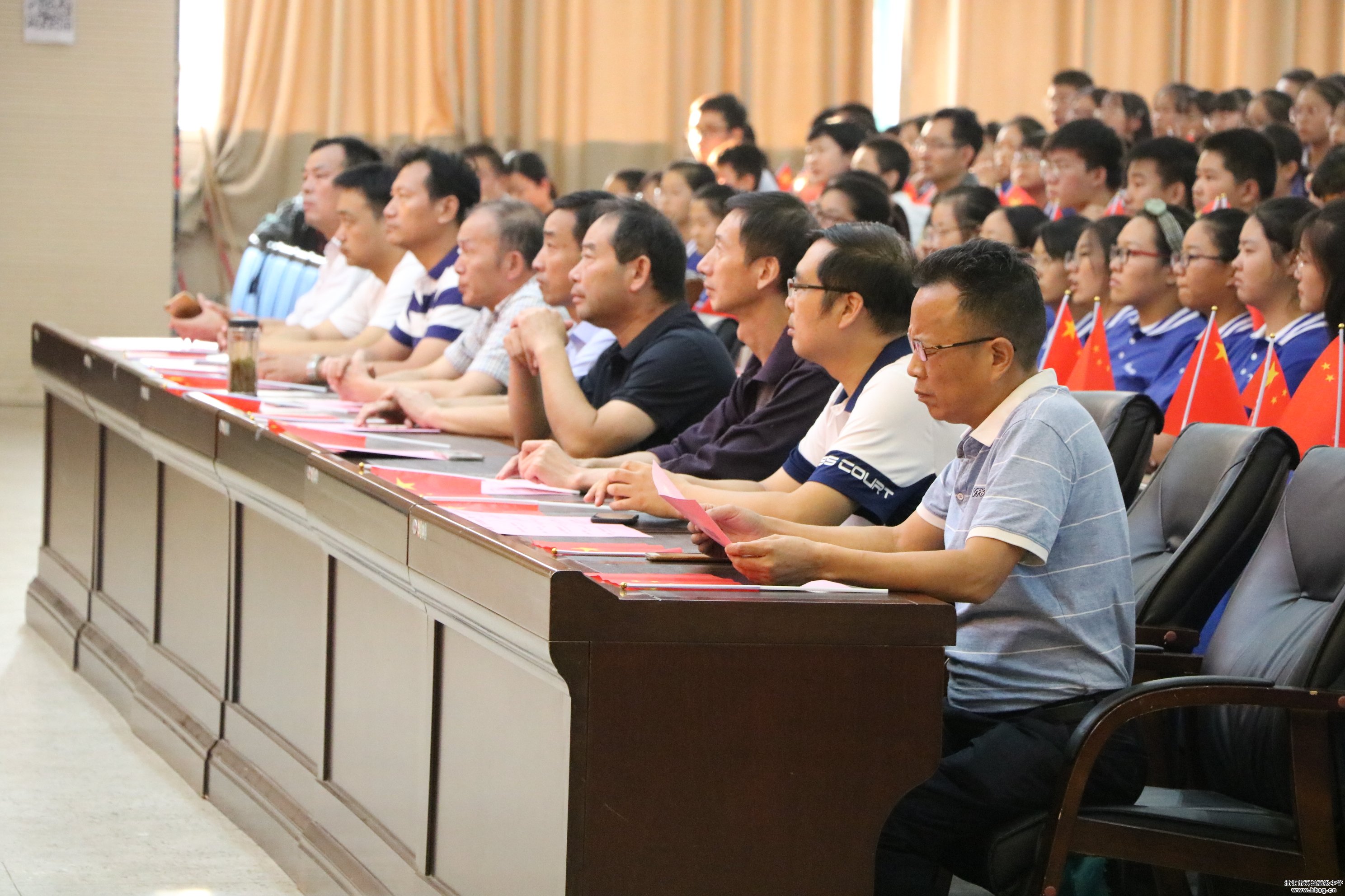 最后一个节目,全场起立,高举国旗唱响《歌唱祖国》把演出推到最高潮。全场师生心潮澎湃、激情满怀,为中华人民共和国70华诞送去最诚挚的祝福,为伟大祖国献上最深情的告白:我们将高举习近平新时代中国特色社会主义伟大旗帜,发扬中华民族自强不息的奋斗精神和众志成城、坚韧不屈的爱国情怀,凝聚起实现民族复兴中国梦的磅礴力量。请祖国放心,我们一定会为实现两个一百年目标和中华民族伟大复兴的中国梦勇担使命,刻苦学习,我们一定会成为社会主义现代化合格的建设者和接班人。
